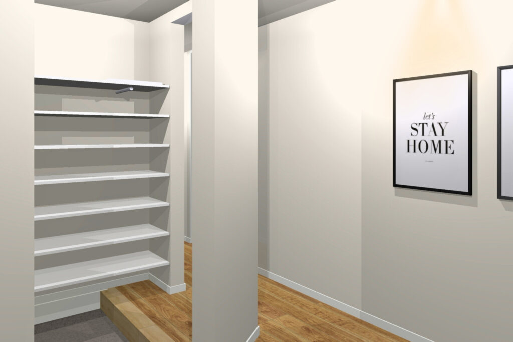 | ◎「使いやすい!」を叶える、ファミリークロークの収納計画 1階のファミリークロークには、帰宅後の片付けが習慣化するファミリーロッカーを設置。 家族一人ひとりの定位置を作ることで、モノが散らかりにくく、スムーズな生活動線をサポートする工夫がされています。 |
