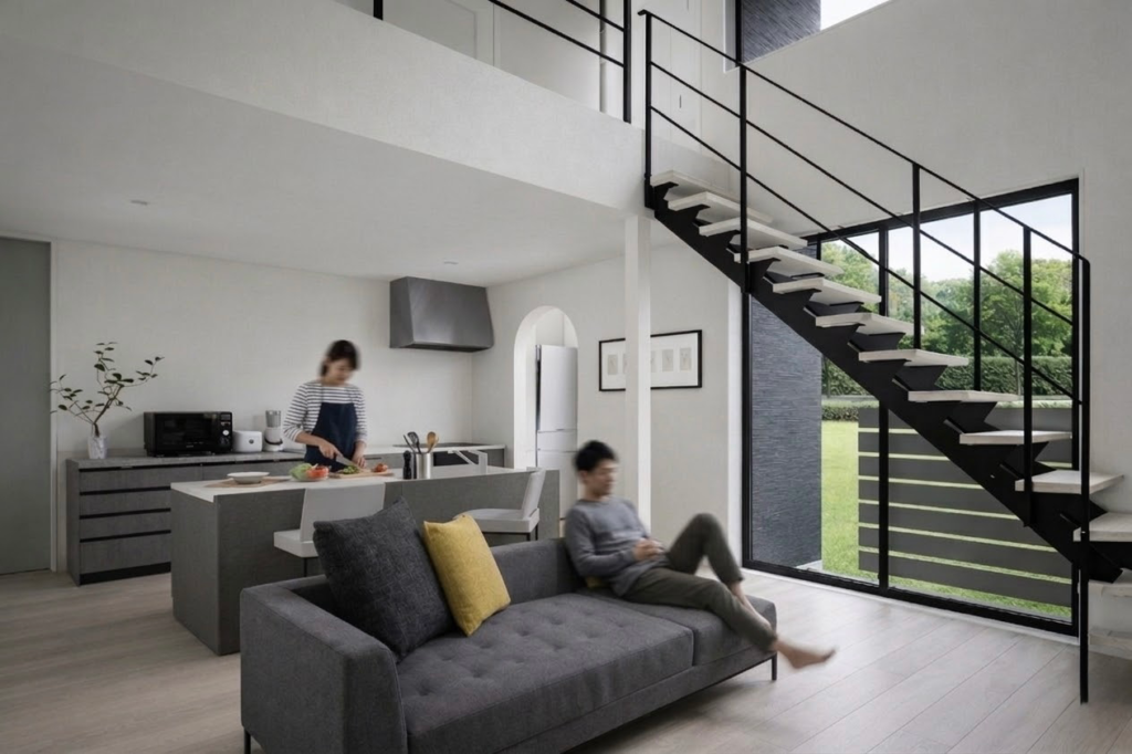1階で完結する収納計画など、忙しい共働き世帯の暮らしを整える工夫が詰まっています。