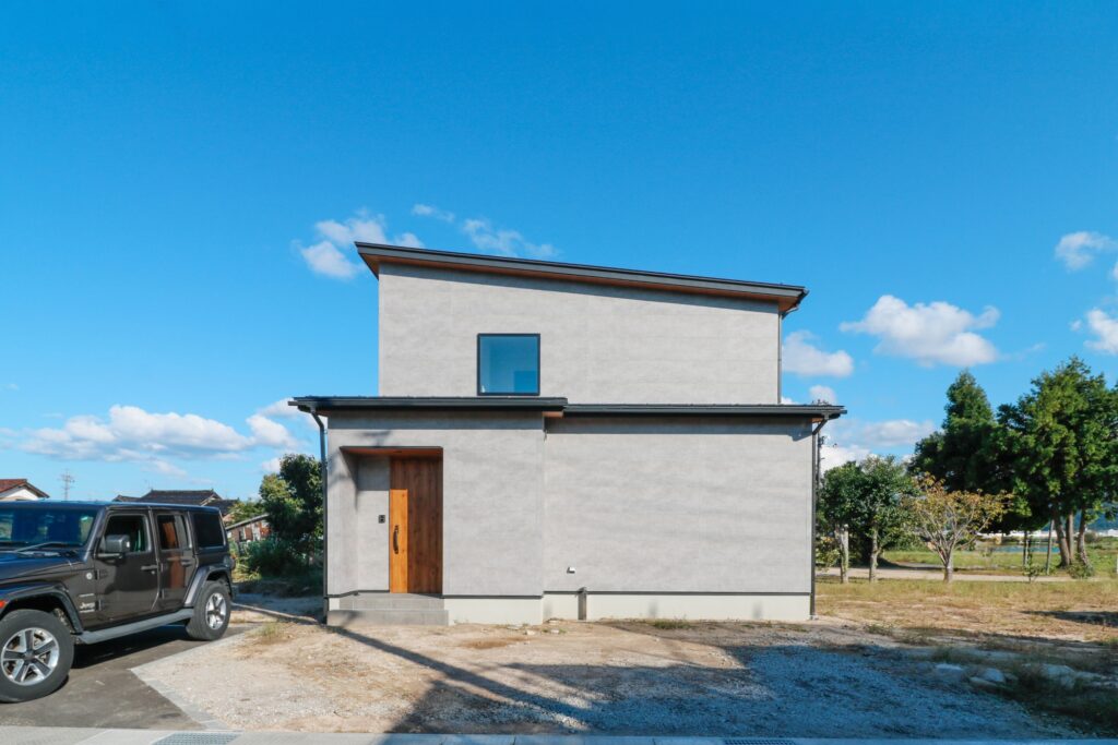 コンクリート調のシャープな外観。