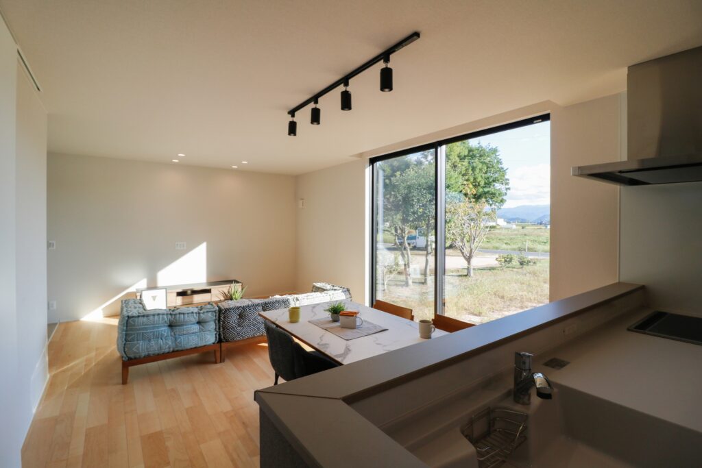 自然光が入る温もりのあるリビング。